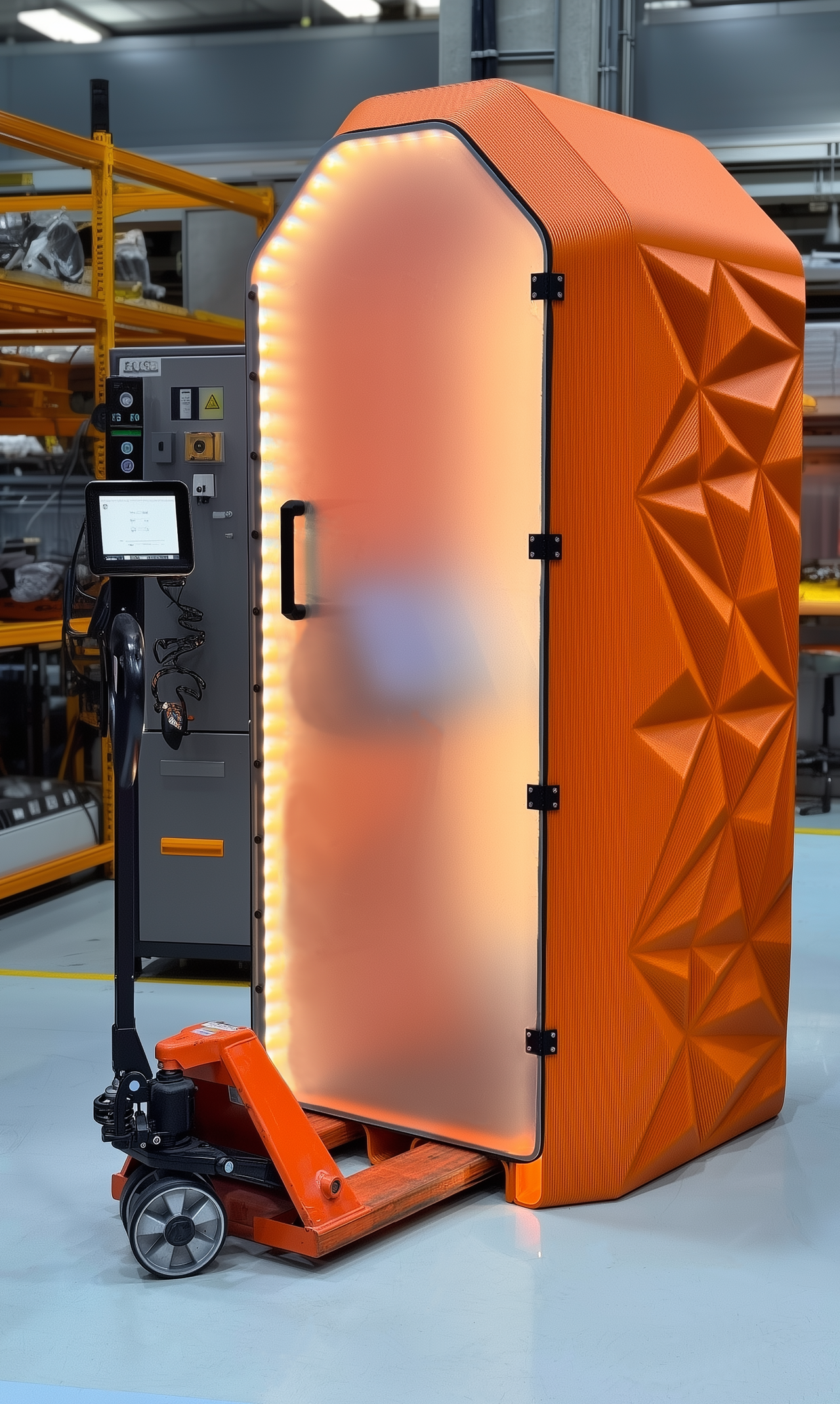 At KraussMaffei, we are shortening these distances in the long term. With the LearningPod, we bring the learning portal directly to the employees. We train sequentially, department by department. The LearningPods are positioned in central locations and brought directly to the relevant production area as required. A pallet truck is all that is needed to position the LearningPod quickly and flexibly. Connection is straightforward via a standard power cable with an EU earthed plug.