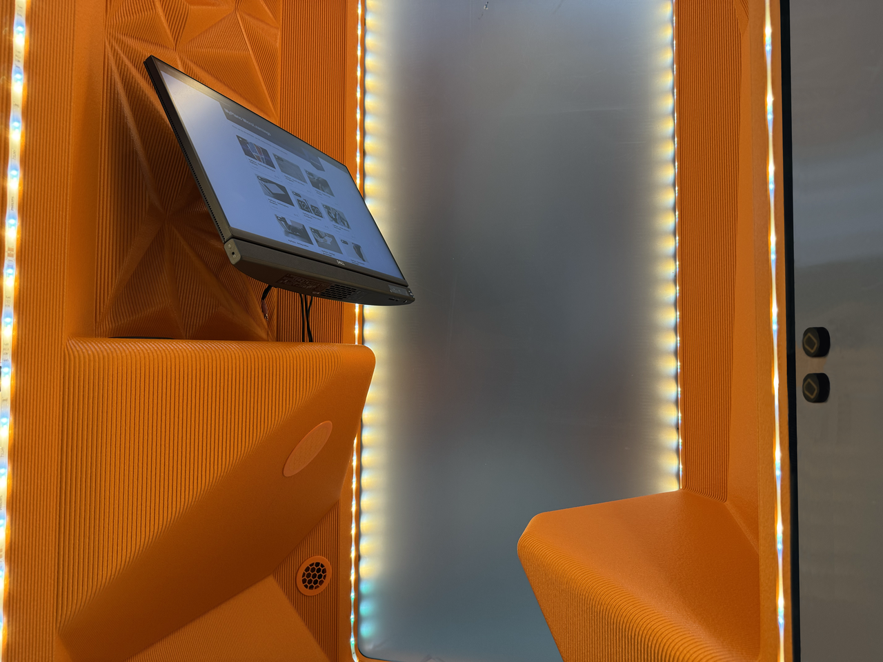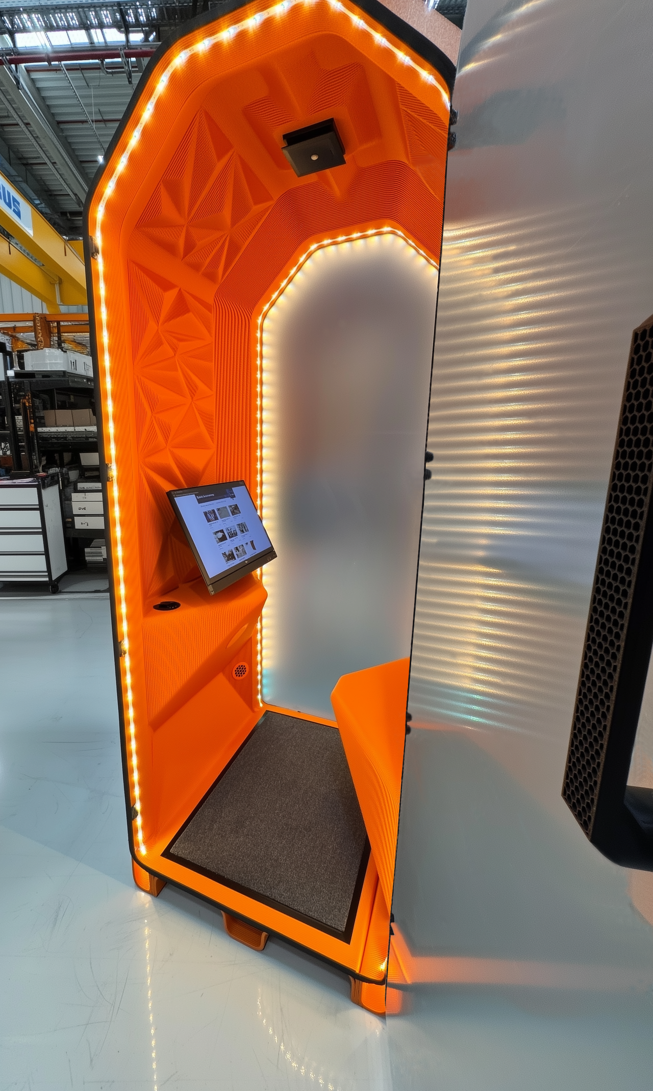 The KraussMaffei LearningPod is a flexible, extremely mobile (learning) booth that can be easily integrated into production environments and enables seamless interaction with existing digital learning management systems or intranets.