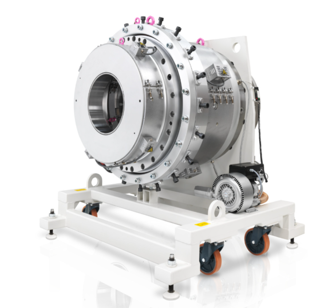 Our pipe heads are the heart of every high-performance extrusion line. They combine flow-optimized geometry with innovative technology to ensure maximum dimensional accuracy, perfect melt distribution, and minimal wall thickness tolerances. Whether for mono- or multilayer pipes, for standard or special applications – KraussMaffei Extrusion pipe heads stand for maximum flexibility, efficiency, and product quality.