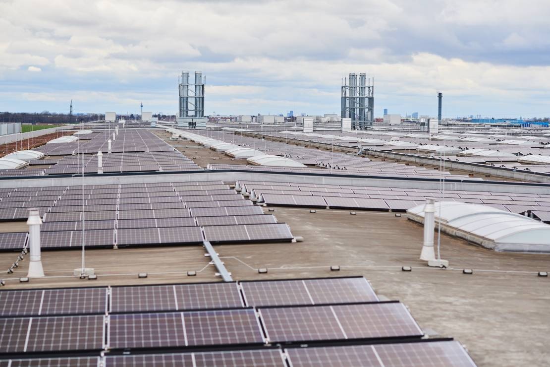 Mit unserer PV-Anlage am Standort Parsdorf, die mit einer Leistung von 9,1 MWp zu einer der größten PV-Aufdachanlagen Europas zählt, konnten wir 2024 5.192 MWh Solarstrom erzeugen. Damit konnten wir 2024 28,4 % des Strombedarfs am Standort mit klimaschonendem Sonnenstrom decken.