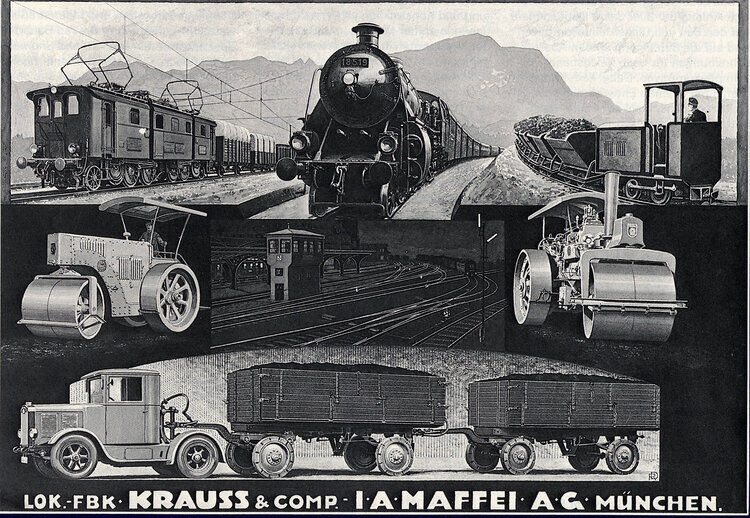 As a result of the global economic crisis, Krauss & Comp. takes over J.A. Maffei: Lokomotivfabrik Krauss & Comp. - J.A. Maffei A.-G. Munich is founded, with locomotive construction remaining the core business.