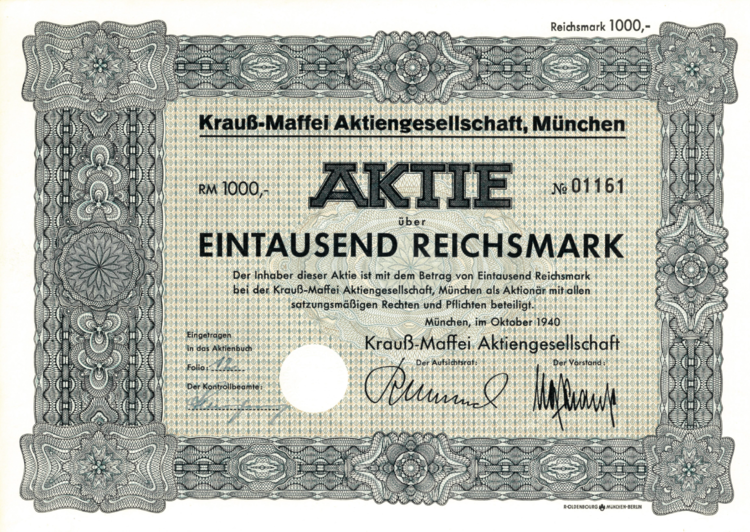 A new chapter in the company's history begins: Lokomotivfabrik Krauss & Comp. - J.A. Maffei A.-G. Munich is renamed Krauss-Maffei AG - the forerunner of the name that still exists today. The portfolio now includes the main divisions of transportation technology, defence technology and process engineering.
